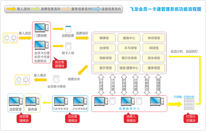 1.VIP 卡分类 2. 支持 IC 卡 /ID 卡 / 磁条卡 / 可视卡充值积分消费;积分卡;计次卡、挂帐和正副卡管理 3. 多种积分方式和折扣方式 4. 前台权限控制发卡,充值; 5.VIP 会员消费分析报表等 |